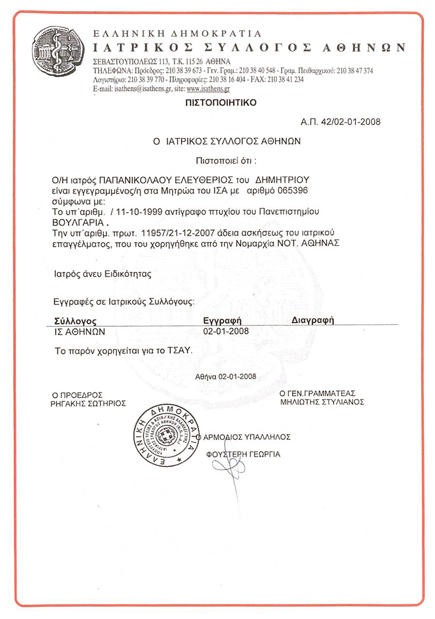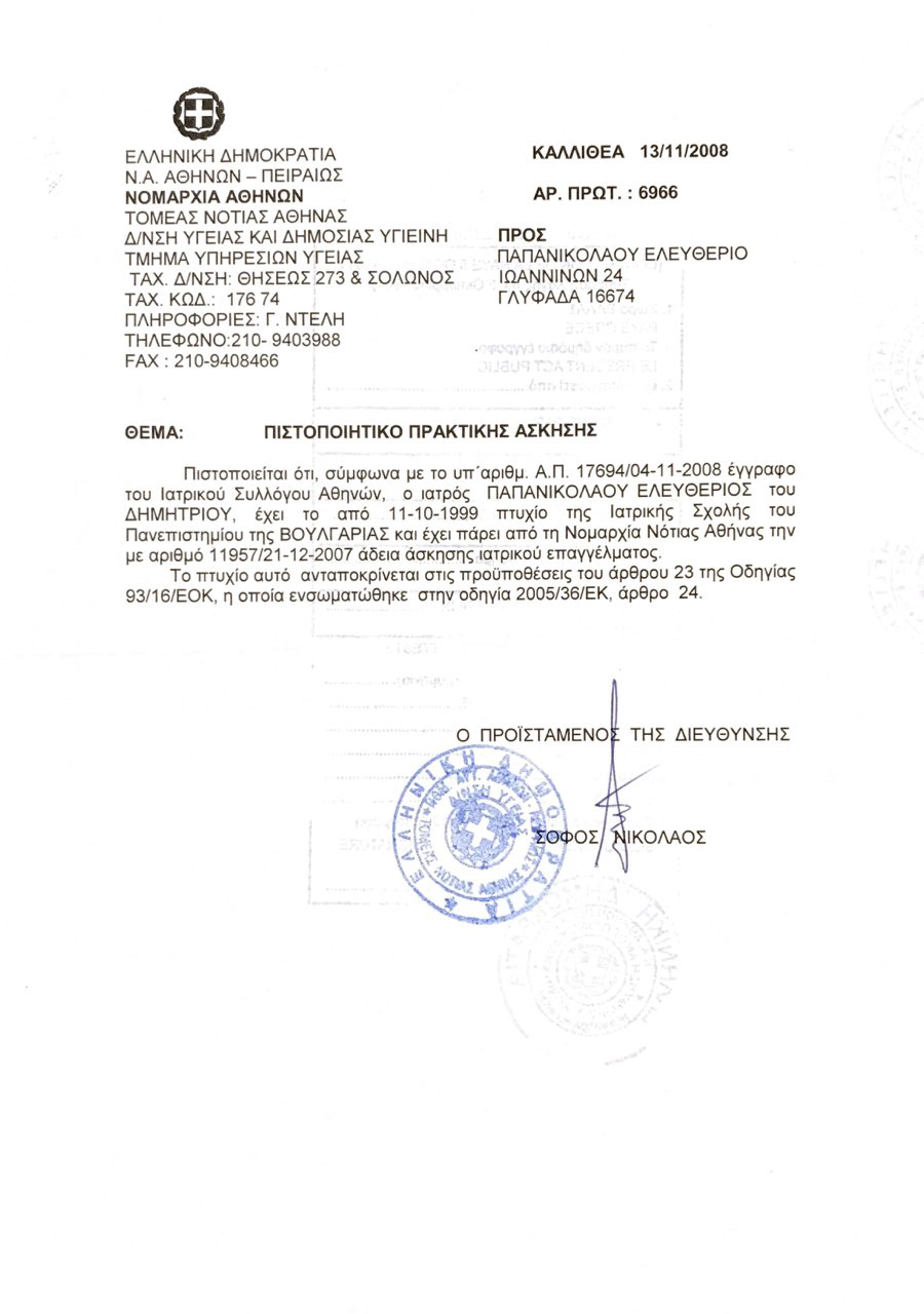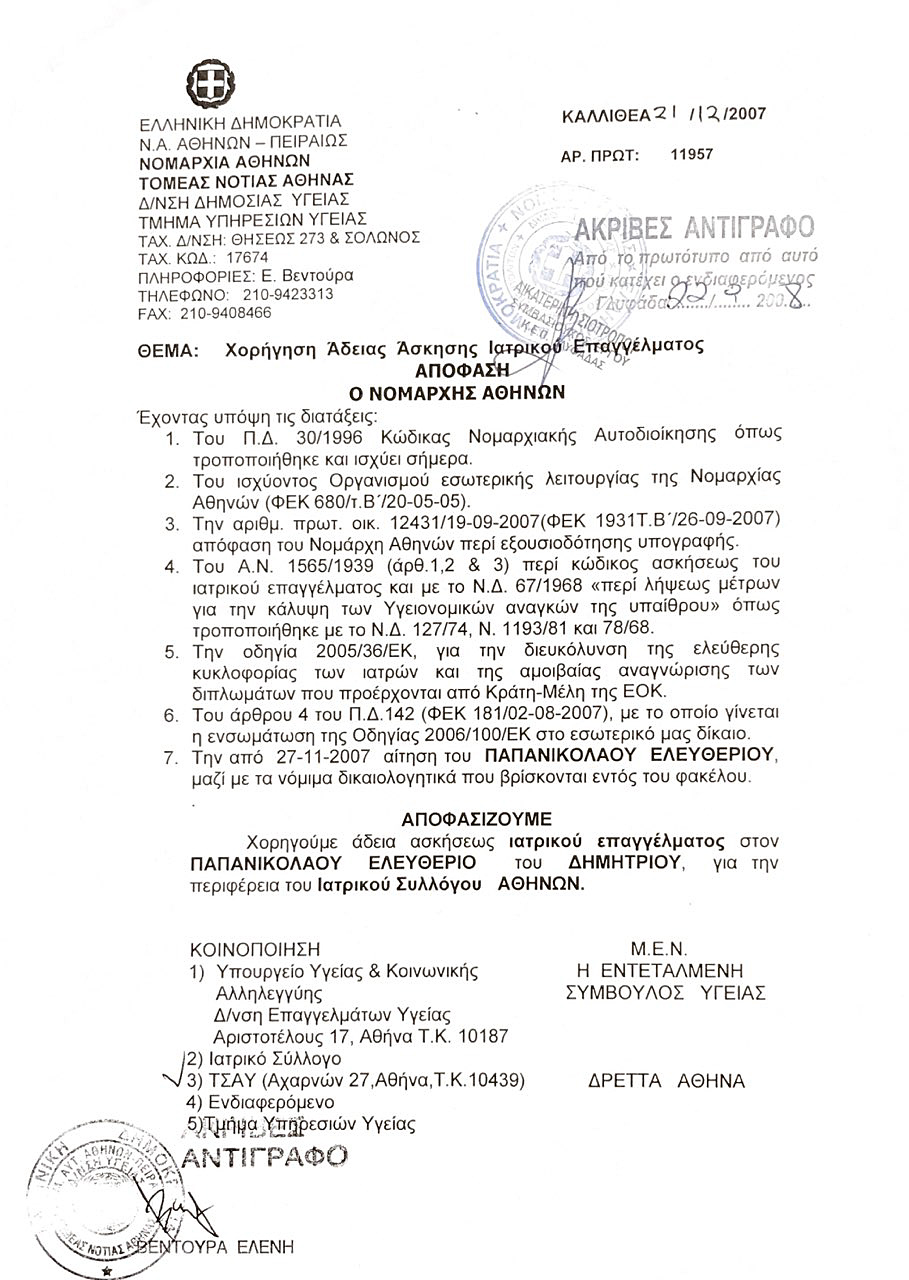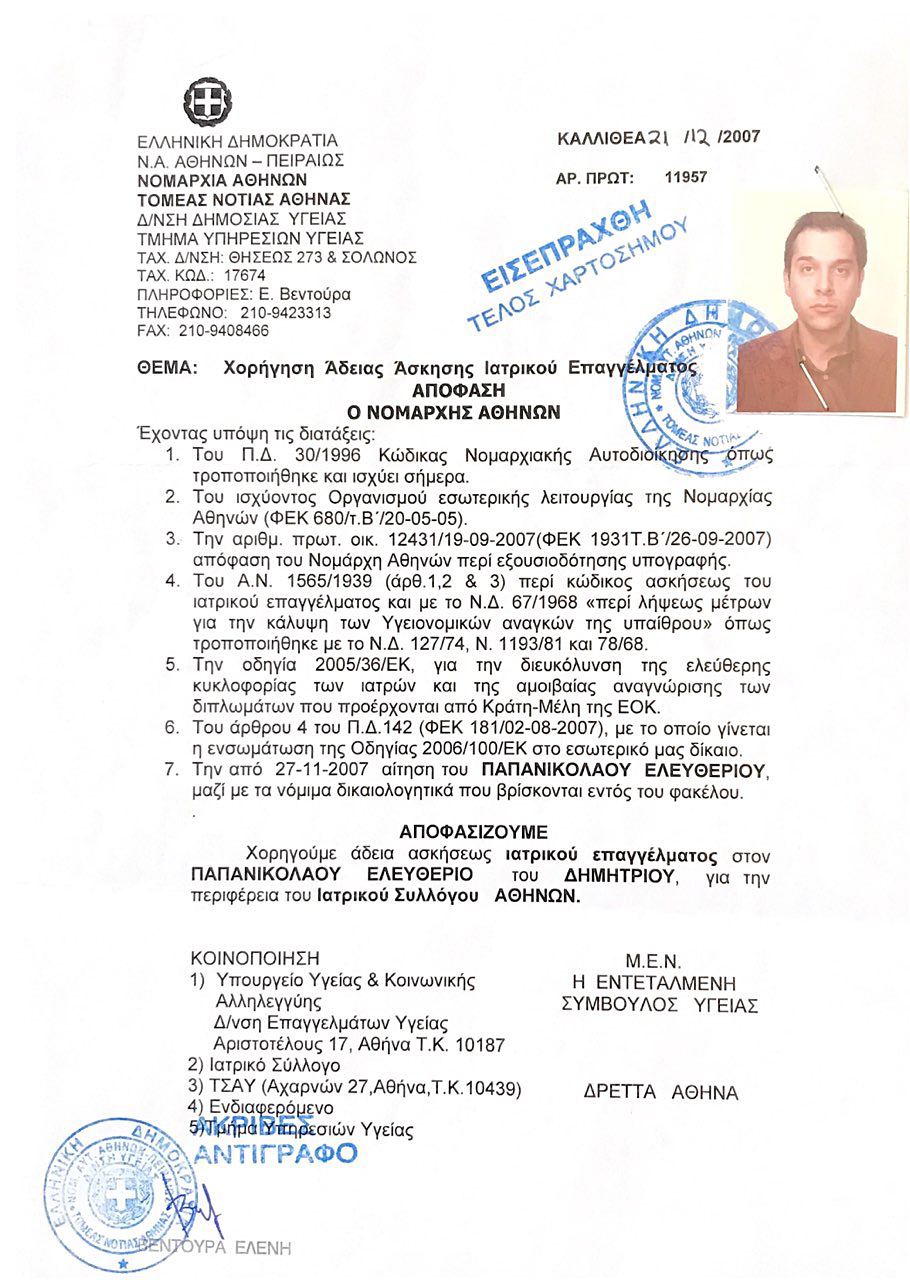 Άδεια Άσκησης Ιατρικού Επαγγέλματος